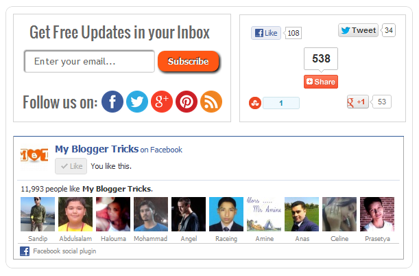 This widget has almost everything you will need to promote your blog and increase fans and readers. It has a Subscribe Box,Share Box, Facebook like box; what else you want? It can replace any other social buttons, widgets or plugins you are using on your blog. Get ready to see the amazing beauty in action which will nurture your blog.